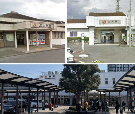 お車の持ち込みやお引き取りの際、ご希望の方は近隣のJR大岡駅、もしくは三島駅、下土狩駅まで無料で送迎致します。